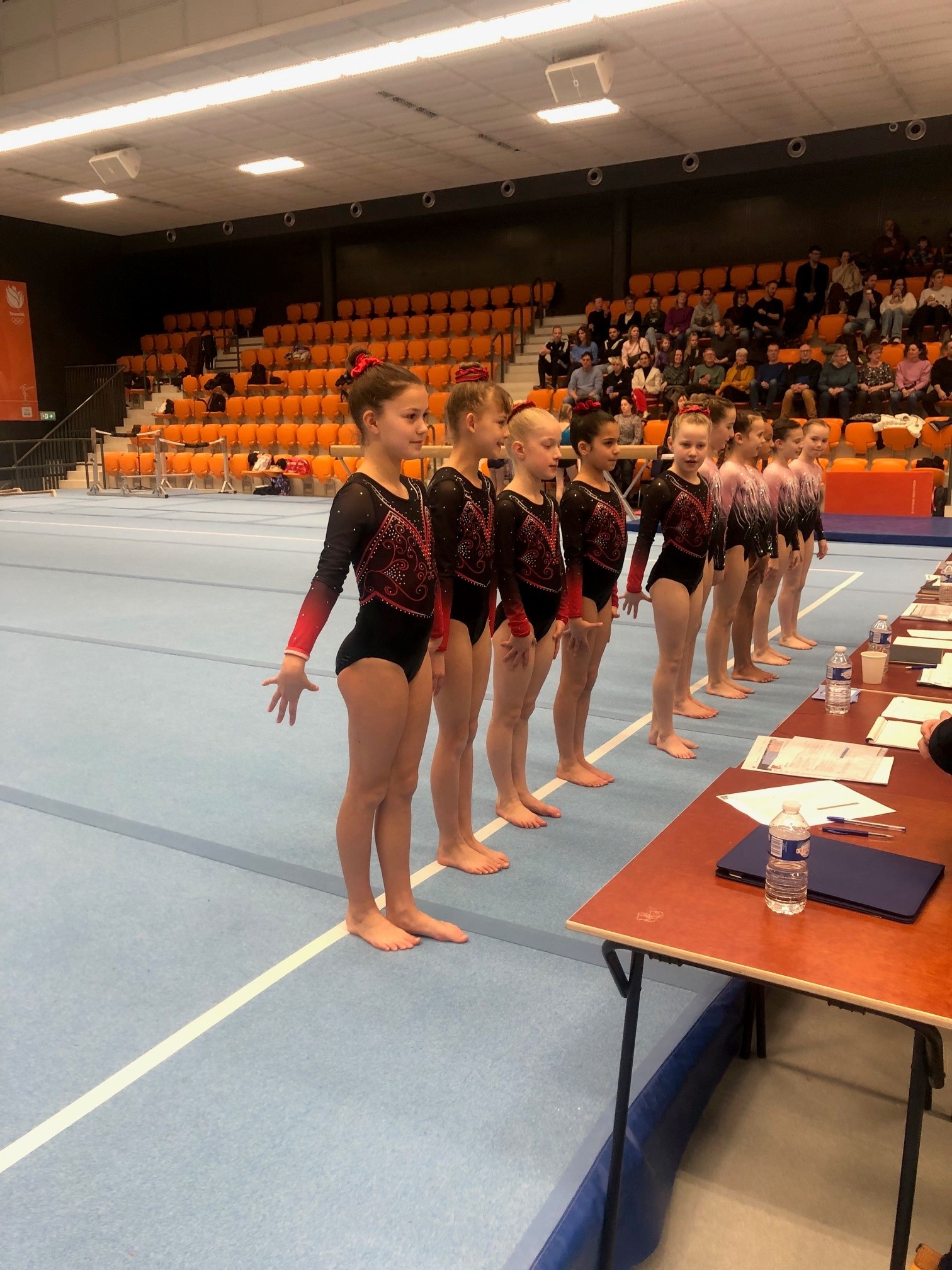 Zij begonnen als team sterk aan de wedstrijd op het toestel vloer waarbij hoge scores werden neergezet. Sprong verliep ook netjes!