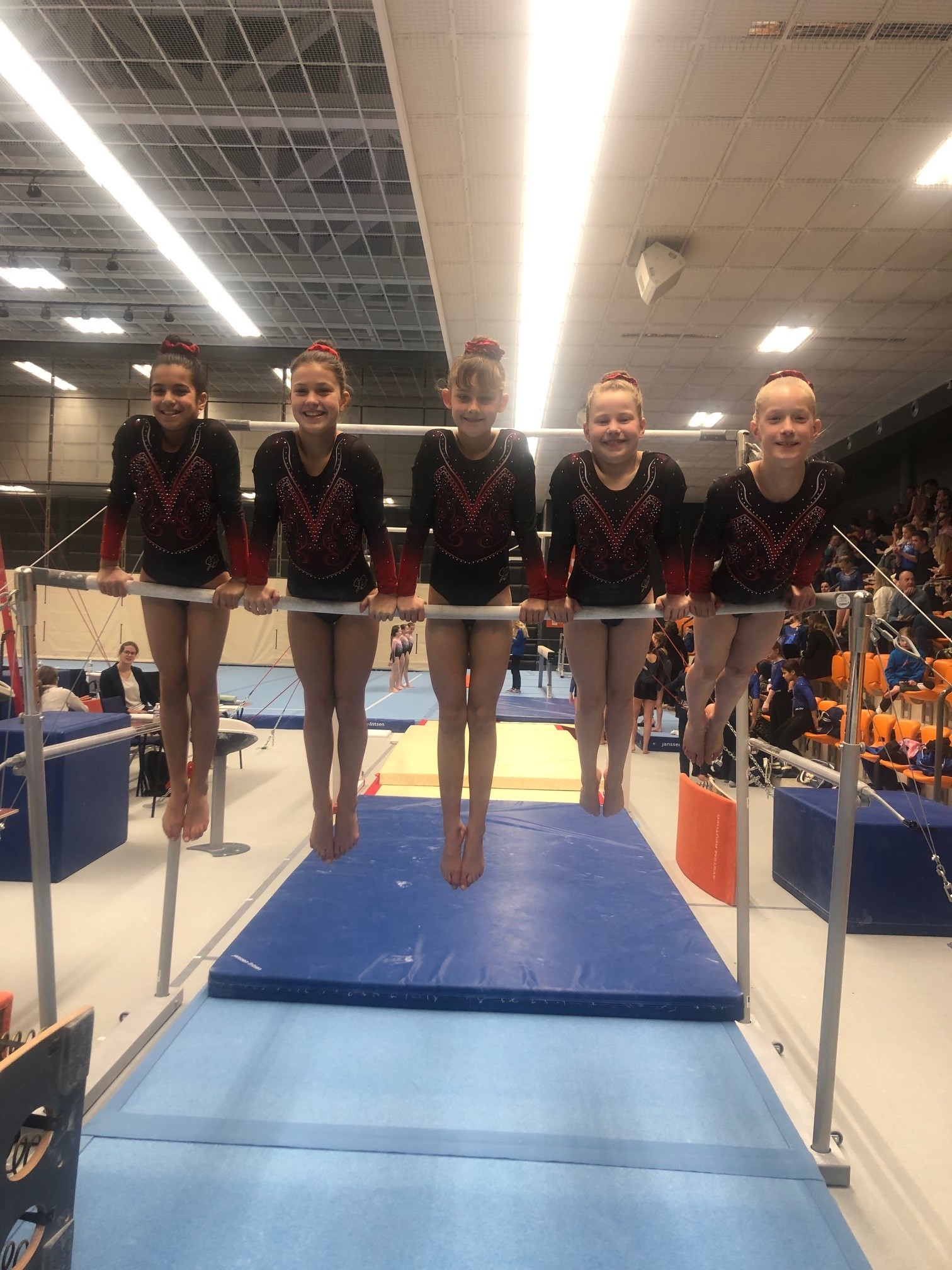 Zaterdag 11 februari turnden Sara, Eden, Iris, Zoë en Maxime hun 2e teamwedstrijd MB4 in Topsportcentrum Rotterdam.